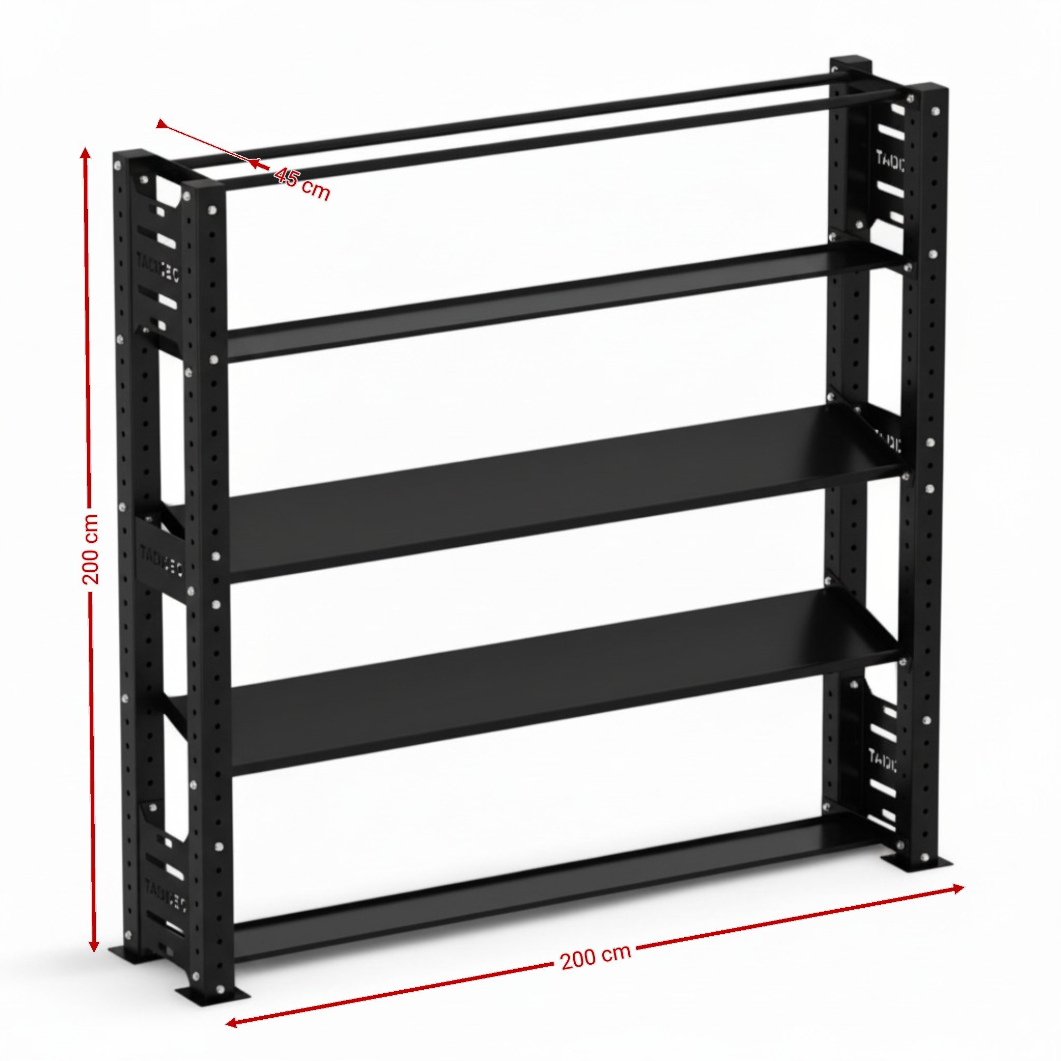 בנוי מפרופילי ריג 75 על 75 ממ. מאפשר לאחסן על העמודים גם אביזרי ריג.